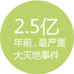距今約2.5億年前的二疊紀末期,發(fā)生了有史以來最嚴重的大滅絕事件,估計地球上有96%的物種滅絕,其中90%的海洋生物和70%的陸地脊椎動物滅絕。三葉蟲、海蝎以及重要珊瑚類群全部消失。陸棲的單弓類群動物和許多爬行類群也滅絕了。 這次大滅絕使得占領海洋近3億年的主要生物從此衰敗并消失。