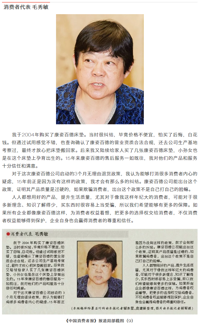 我國消費(fèi)者權(quán)益保護(hù)工作是自上而下來推進(jìn)的。在這種情況下,作為經(jīng)營者的康姿百德能夠主動(dòng)站出來以自下而上的方式保護(hù)消費(fèi)者權(quán)益,并促使更多企業(yè)參與到消費(fèi)者權(quán)益保護(hù)的過程中來,是值得大力倡導(dǎo)的。