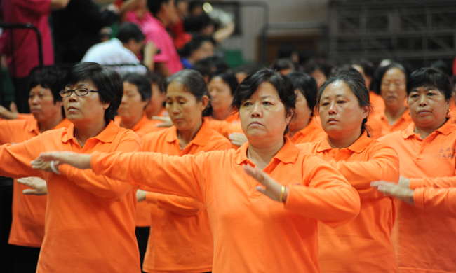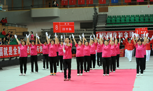 北京昌平隊 從選拔、備戰(zhàn)到今天的總決賽,一路走來,參賽隊員們的動作越來越熟練,越來越標(biāo)準(zhǔn),團隊凝聚力越來越強。這些活力十足的中老年朋友并沒有滿足于越跳越熟練這一標(biāo)準(zhǔn),不少參賽隊伍在原有健身操基礎(chǔ)上又添加了一些新的成分。充滿個性的隊名、色彩鮮艷的運動裝、揮舞的彩旗等創(chuàng)意,在總決賽的舞臺上給所有觀眾打造了一臺視覺盛宴,讓參賽節(jié)目更有看頭。賽場上,參賽隊員的展示非常到位,微笑始終掛在臉上,就連賽前的口號都是精心準(zhǔn)備、反復(fù)推敲?;盍o限的她們感染了舞臺下的每一位觀眾,現(xiàn)場觀眾都在用自己最熱烈掌聲、最大的歡呼聲表達著對參賽選手的喜愛和尊重。 |