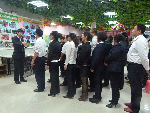 培訓(xùn)期間,各個(gè)專賣店的員工分別進(jìn)行了現(xiàn)場(chǎng)模擬。首先進(jìn)行模擬的烏魯木齊隊(duì),在總部培訓(xùn)老師的認(rèn)真指導(dǎo)下,對(duì)出現(xiàn)的工作狀態(tài)、學(xué)習(xí)狀態(tài)、基礎(chǔ)知識(shí)、專業(yè)技能等方面的問題,不厭其煩練習(xí),認(rèn)真修正完善,經(jīng)過3個(gè)小時(shí)的努力,終于按規(guī)定標(biāo)準(zhǔn)完成任務(wù)。在隨后的團(tuán)隊(duì)模擬演練中,大家都能認(rèn)真吸取經(jīng)驗(yàn)教訓(xùn),克服自身薄弱環(huán)節(jié),出現(xiàn)的問題越來越少,模擬活動(dòng)越來越進(jìn)入狀態(tài),一次比一次成功。至10月2日晚,模擬演練活動(dòng)圓滿結(jié)束,并評(píng)選出了5名優(yōu)秀員工獎(jiǎng)和最佳團(tuán)隊(duì)獎(jiǎng)。
