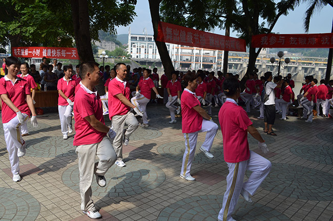 8月8日,福建永安市江濱公園,鼓樂喧天,熱鬧非凡,“我運動、我健康、我快樂”,“每天鍛煉一小時,健康生活一輩子”等宣傳條幅顯得格外醒目。由永安康姿百德經(jīng)銷商和當?shù)厣鐓^(qū)共同舉辦的2014“全民健身 快樂同行”大型公益活動總結(jié)表彰大會正在這里隆重舉行。永安市(區(qū))老齡委、老體協(xié)等單位領(lǐng)導(dǎo)出席啟動儀式并講話,對本次活動給予高度評價,對康姿百德健身操給永安人民健康帶來的好處給予充分肯定。