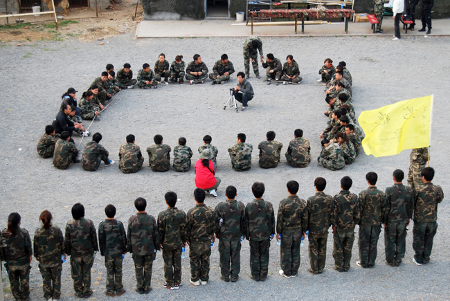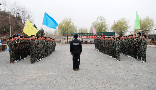 上午8時(shí),簡(jiǎn)短的破冰活動(dòng)后,教練員對(duì)全天活動(dòng)作出詳細(xì)部署并提出嚴(yán)格要求。全體學(xué)員迅速組建“蒼狼”、“勇者”、“亮劍”和“蟑螂”四個(gè)團(tuán)隊(duì)并快速融入各自的團(tuán)隊(duì),高舉團(tuán)隊(duì)旗幟、高呼團(tuán)隊(duì)口號(hào)、高唱團(tuán)隊(duì)隊(duì)歌,大家不畏困難、齊心協(xié)力,圓滿的完成了全天拓展項(xiàng)目。