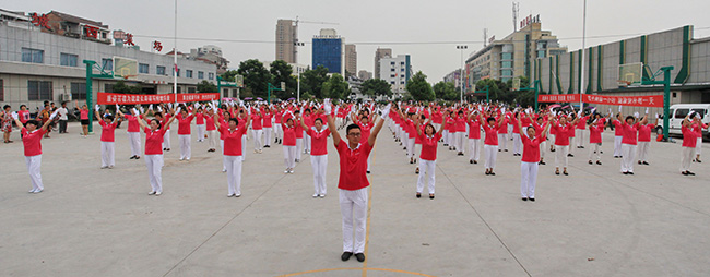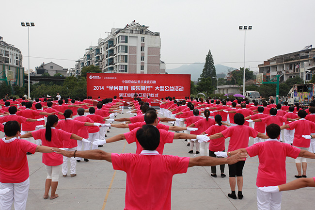 8月8日一大早,為迎接第六個“全民健身日”的到來,浙江仙居廣大市民相約來到城區(qū)西門,伴隨著優(yōu)美的樂曲,共同舞起康姿百德健身操,向人們展示激情與活力。動聽的音樂、優(yōu)美的舞姿,引得行人不時駐足觀看,開心幸福的笑容蕩漾在每個人的臉上,全民健身的理念也深深扎根于每個人的心中。 本次活動得到了當(dāng)?shù)赜嘘P(guān)部門和新聞媒體的關(guān)注,仙居電視臺進行了現(xiàn)場采訪,并于當(dāng)晚在仙居綜合頻道播出。