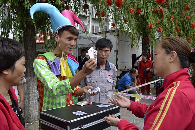 9月18日,是康姿百德公司十周年慶典參觀活動的第二天,前來參觀科技園的各地朋友絡(luò)繹不絕、熱情不減。參觀完科技展廳和制造中心,大家爭相與“福、祿、壽、財”卡通精靈和十周年慶典大型絹花景觀合影,期待把最燦爛的笑容留在康姿百德。由公司員工表演的精彩紛呈的魔術(shù),看得大家瞠目結(jié)舌、翹指贊賞,一些熱心的朋友還拉起魔術(shù)師的手要求講出其中的奧秘。在“神秘雕像”前,表演者一動不動的神奇“騰空術(shù)”引得許多朋友駐足圍觀,大家?guī)缀跬浟颂鞖獾难谉?,一會扮扮鬼臉,一會講講笑話,直至逗玩得“雕像”露出笑容,大家也跟著哈哈大笑起來,歡樂的笑聲給康姿百德科技園增添了不少喜慶祥和。