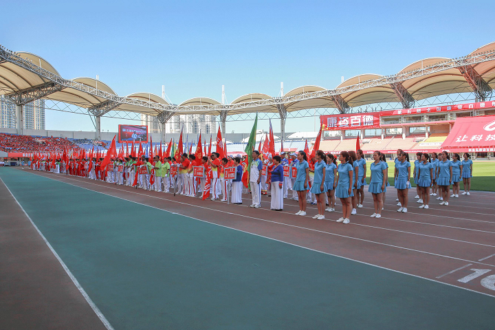 大賽初始,伴隨著激動人心的音樂, 一幅608平方米的巨型康姿百德紅旗步入賽場,康姿百德91名工作人員共舉旗幟,整齊自如地緩緩前行,給人以極大的視覺沖擊。