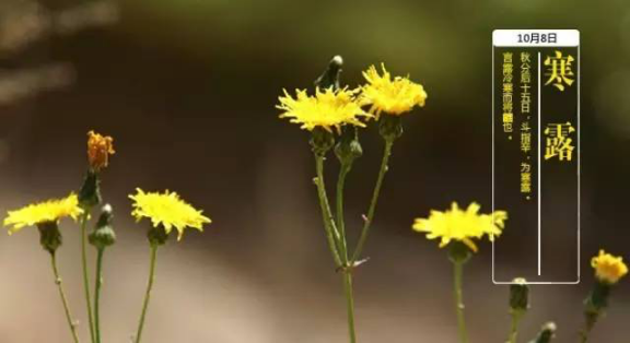 從字面上看,寒露的“寒”就是寒冷,“露”則表示了近地面水汽凝結(jié)成露水的現(xiàn)象。但從氣象角度來看,寒露節(jié)氣和白露、霜降這兩個(gè)節(jié)氣一樣,所表示的熱量變化意義比它的水分變化意義更為明顯。應(yīng)該說,寒露更多地體現(xiàn)了一種氣溫轉(zhuǎn)變,季節(jié)轉(zhuǎn)換的過程。