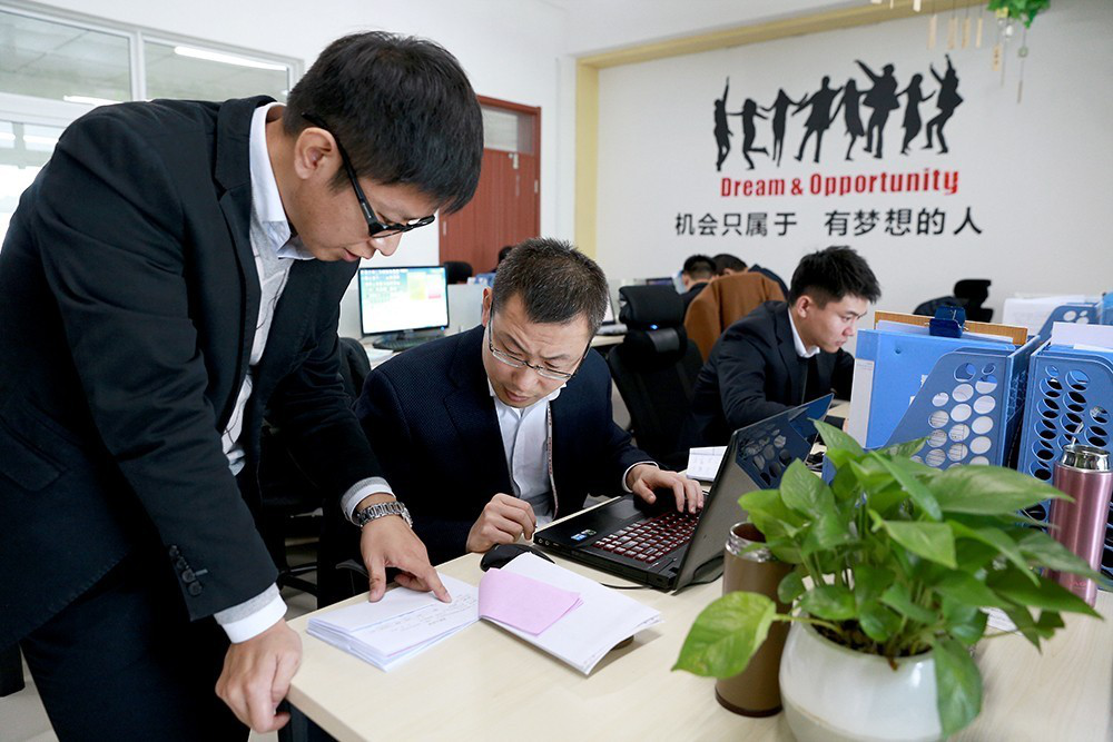 信息管理中心ERP團(tuán)隊(duì)小伙伴在和其它部門的小伙伴進(jìn)行溝通交流