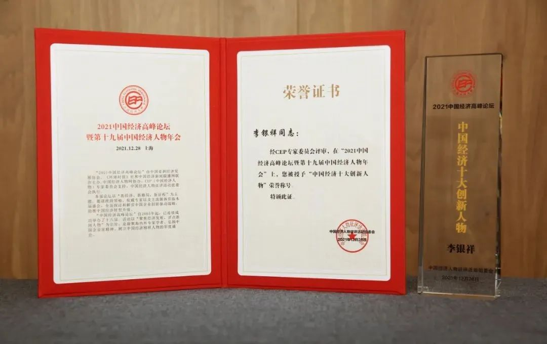 “中國(guó)經(jīng)濟(jì)十大創(chuàng)新人物”榮譽(yù)獎(jiǎng)杯和證書
