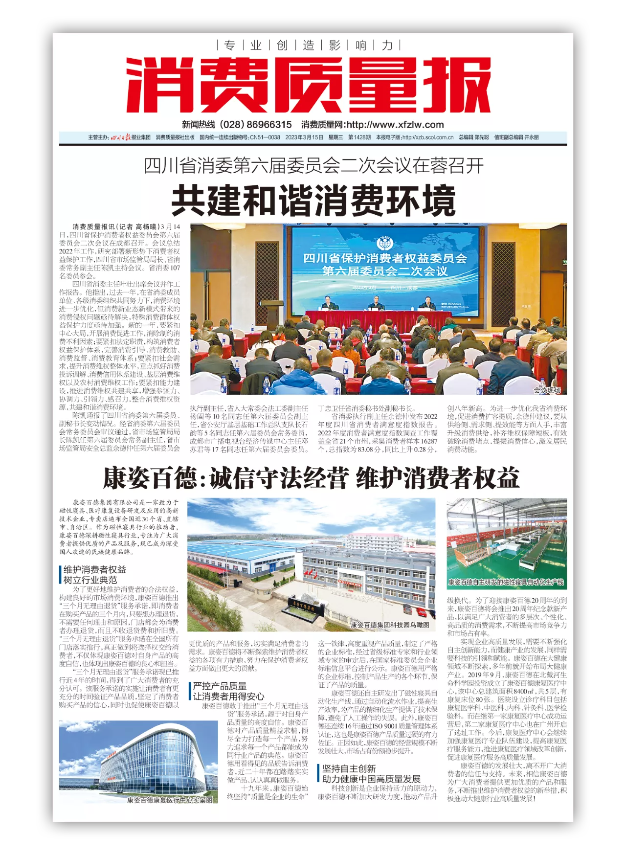 “3·15”國(guó)際消費(fèi)者權(quán)益日,康姿百德以誠(chéng)信經(jīng)營(yíng)、積極維護(hù)消費(fèi)者合法權(quán)益的良好社會(huì)形象,連續(xù)7年榮登《中國(guó)消費(fèi)者報(bào)》。這充分說(shuō)明,康姿百德在誠(chéng)信自律、維護(hù)消費(fèi)者合法權(quán)益等方面的努力和付出,得到了社會(huì)各界的高度肯定和廣泛認(rèn)可。
