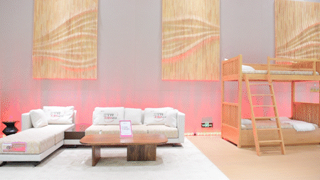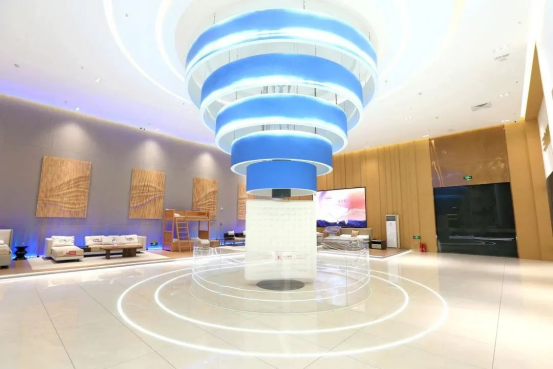 科技展廳的產(chǎn)品展示區(qū),以“科技感”與“舒適睡眠”為設(shè)計(jì)導(dǎo)向,圍繞“溫暖”“家”“科技”幾個(gè)核心元素,實(shí)現(xiàn)了科技元素與家居生活的有機(jī)結(jié)合,構(gòu)建一個(gè)家庭場景式的沉浸空間,一個(gè)有溫度的展示環(huán)境。