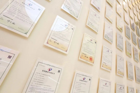 整面的專利墻,收錄了李銀祥董事長領(lǐng)導(dǎo)的旗下集團(tuán)百余項(xiàng)專利。這面墻沒有過多的裝飾,卻足以彰顯李銀祥董事長對科研創(chuàng)新的重視和投入??底税俚略诶钽y祥董事長的領(lǐng)導(dǎo)下,自成立以來就高度重視在科研方面的投入,不斷加大科研投入力度,致力于提升產(chǎn)品和服務(wù)質(zhì)量。