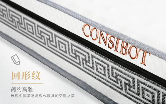 回形紋是中國傳統(tǒng)的吉祥圖案,象征著永恒和連綿不斷的生命力。康姿百德清雅款床墊圍邊用“回形紋”加以點綴,賦予了吉祥如意、福運綿綿的美好寓意,展現(xiàn)了中式美學與現(xiàn)代寢具的交融之美。同時也增強了床墊整體的精致感。
