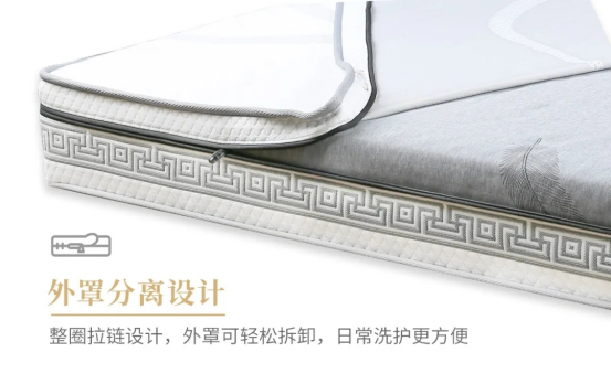 康姿百德清雅款床墊還采用上下外罩分離設計,拉開拉鏈后可將床墊外套拆分成上下兩部分,拆裝清潔更方便。
