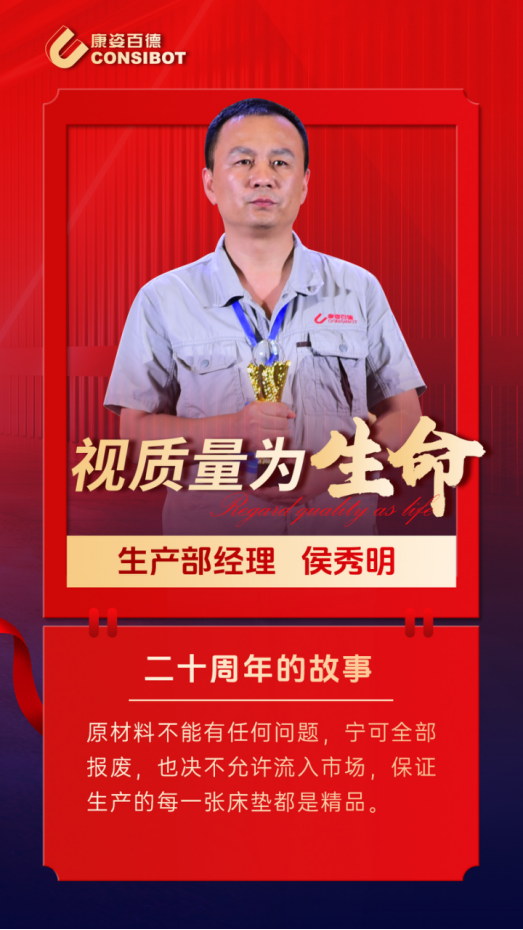 今年是康姿百德集團(tuán)成立20周年。在20年的發(fā)展歷程中,涌現(xiàn)出一大批在生產(chǎn)發(fā)展、原料采購(gòu)、質(zhì)量管控、經(jīng)營(yíng)管理、售后服務(wù)等各個(gè)領(lǐng)域立足崗位、奉獻(xiàn)建功的優(yōu)秀代表。讓我們一起看看這些榜樣故事。本期帶你走進(jìn)康姿百德生產(chǎn)部經(jīng)理侯秀明。