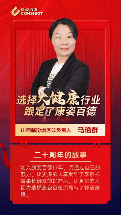 今年是康姿百德集團(tuán)成立20周年。在20年的發(fā)展歷程中,涌現(xiàn)出一大批在經(jīng)營管理、原料采購、品牌宣傳、暖心服務(wù)、人才引進(jìn)和培訓(xùn)等各個領(lǐng)域立足崗位、奉獻(xiàn)建功的優(yōu)秀代表。讓我們一起看看這些榜樣故事。本期帶你走進(jìn)康姿百德山西臨汾地區(qū)總負(fù)責(zé)人馬艷群。