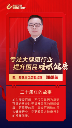 2017年,鄭朝榮在對(duì)康姿百德有了一定了解后,義無反顧的加入了康姿百德。這不僅僅是因?yàn)榭底税俚率冀K專注于提升國(guó)民的睡眠健康,更重要的是,康姿百德做的是大健康行業(yè),他更看重大健康行業(yè)的發(fā)展前景。每當(dāng)他看到顧客因?yàn)檫x擇了康姿百德的產(chǎn)品和服務(wù),臉上綻放出燦爛的笑容時(shí),他更是由衷地感到高興。