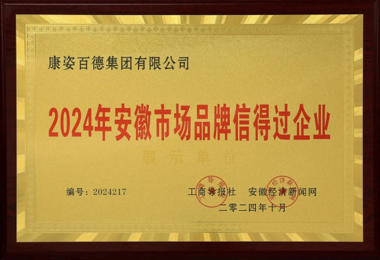 “2024年安徽市場(chǎng)品牌信得過(guò)企業(yè)”榮譽(yù)稱(chēng)號(hào)