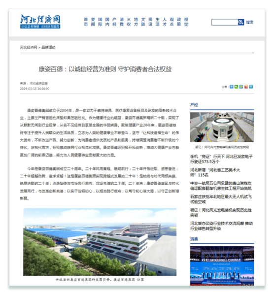 河北經(jīng)濟(jì)網(wǎng)、中國(guó)質(zhì)量監(jiān)管網(wǎng)、四川消費(fèi)質(zhì)量網(wǎng)等多家媒體也對(duì)康姿百德進(jìn)行了全方位報(bào)道。