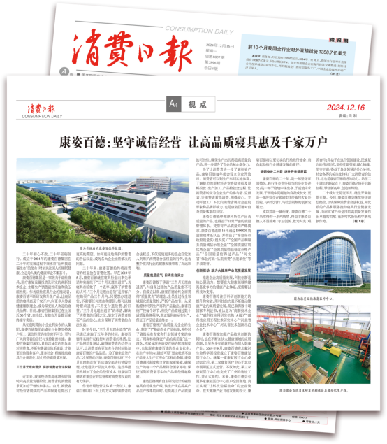 《消費(fèi)日?qǐng)?bào)》于1985年創(chuàng)刊,由國(guó)務(wù)院國(guó)有資產(chǎn)監(jiān)督管理委員會(huì)舉辦,中國(guó)輕工業(yè)聯(lián)合會(huì)主管主辦。今年2月,消費(fèi)日?qǐng)?bào)以“康姿百德:保護(hù)消費(fèi)者合法權(quán)益 助力營(yíng)造誠(chéng)信消費(fèi)環(huán)境”為題,對(duì)康姿百德進(jìn)行了專(zhuān)版報(bào)道。