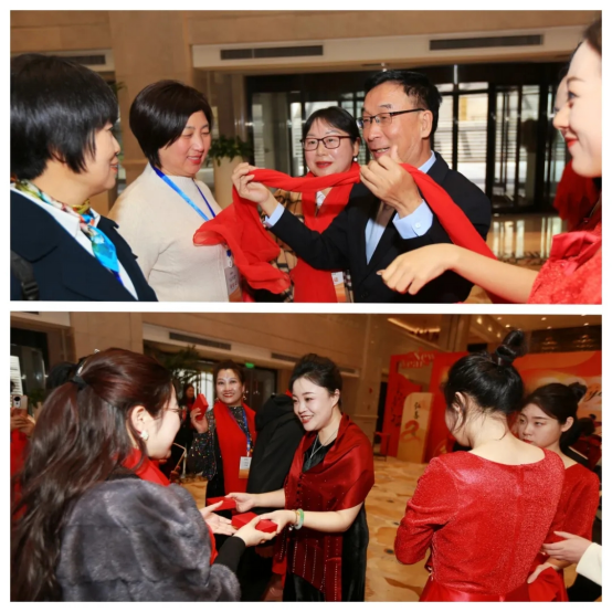 年會伊始,一條鮮紅的星光大道從會場入口延伸至主舞臺。全體參會家人身著正裝,神采奕奕踏上紅毯,在攝影鏡頭的聚焦下展現(xiàn)自信風(fēng)采。董事長李銀祥攜管理層團(tuán)隊(duì)親自迎接,為每一位家人佩戴象征“鴻運(yùn)當(dāng)頭”的定制紅絲巾。簽名墻上,密密麻麻的名字不僅記錄著2024年的奮斗足跡,更寫滿對2025年的熱切期待。