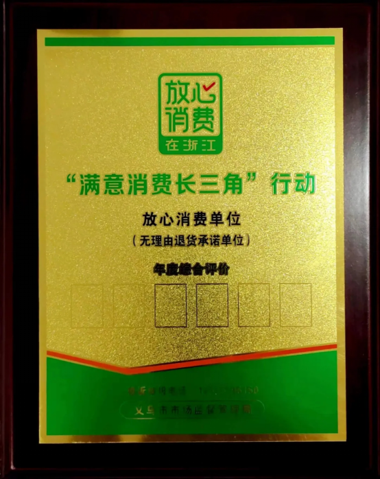 義烏康姿百德榮獲“放心消費(fèi)單位”榮譽(yù)稱號(hào)