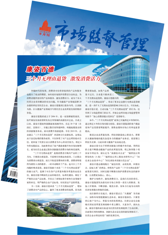 《市場監(jiān)督管理》半月刊以《康姿百德:三個月無理由退貨 激發(fā)消費活力》為題,全面、詳細地報道了康姿百德。